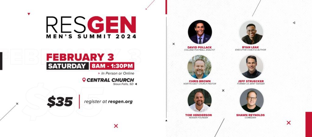 The popular annual RESGEN Men’s Summit, which draws more than 1,100 men in person and has more than 1,500 watching online and at simulcast sites, will be from 8 a.m. to 1:30 p.m. Feb. 3 at Central Church, 3102 W. Ralph Rogers Road.