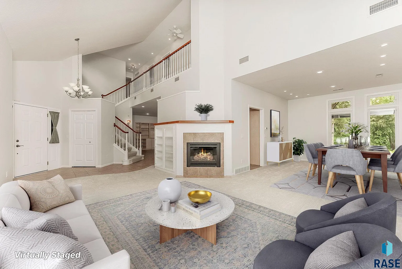 “You’ll find 15-foot ceilings in the living room along with a gas fireplace and abundant natural light,” Hedrick said.
