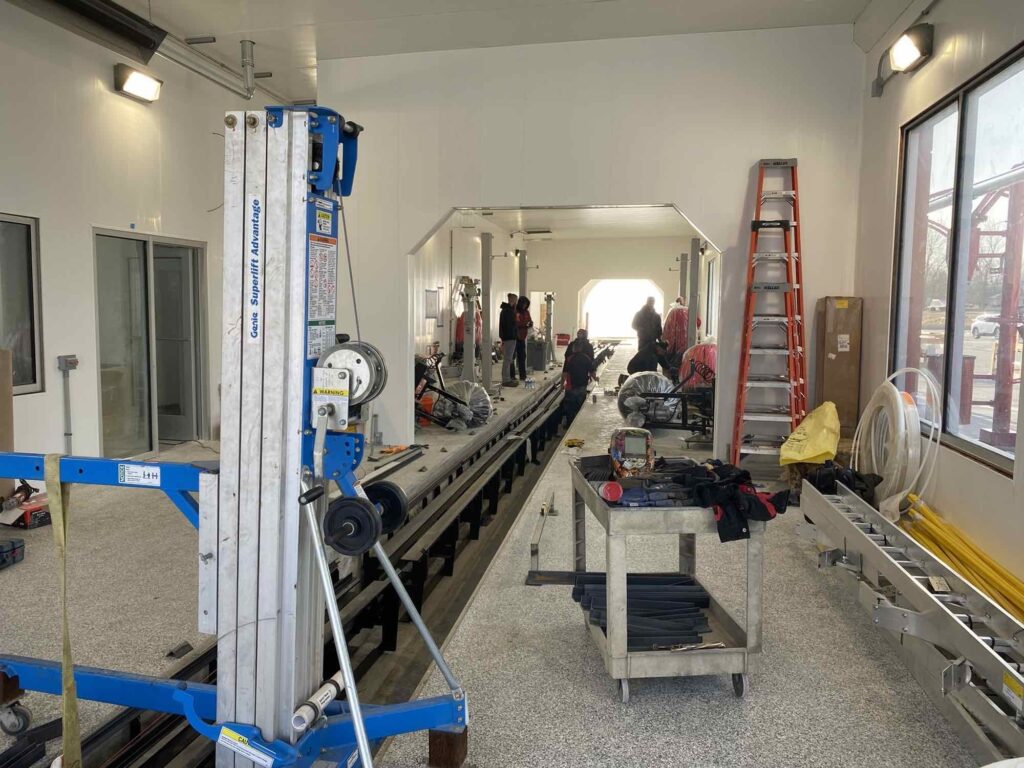 The installation team handles all equipment, from the pieces in the mechanical room that ensure everything runs properly to the equipment in the wash bay that physically washes the cars, plus the point-of-sale setup, camera system and many smaller storage and signage items on-site.