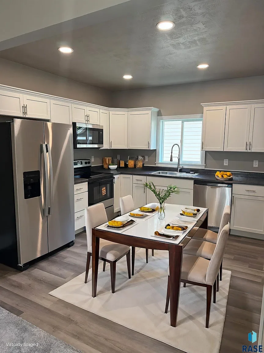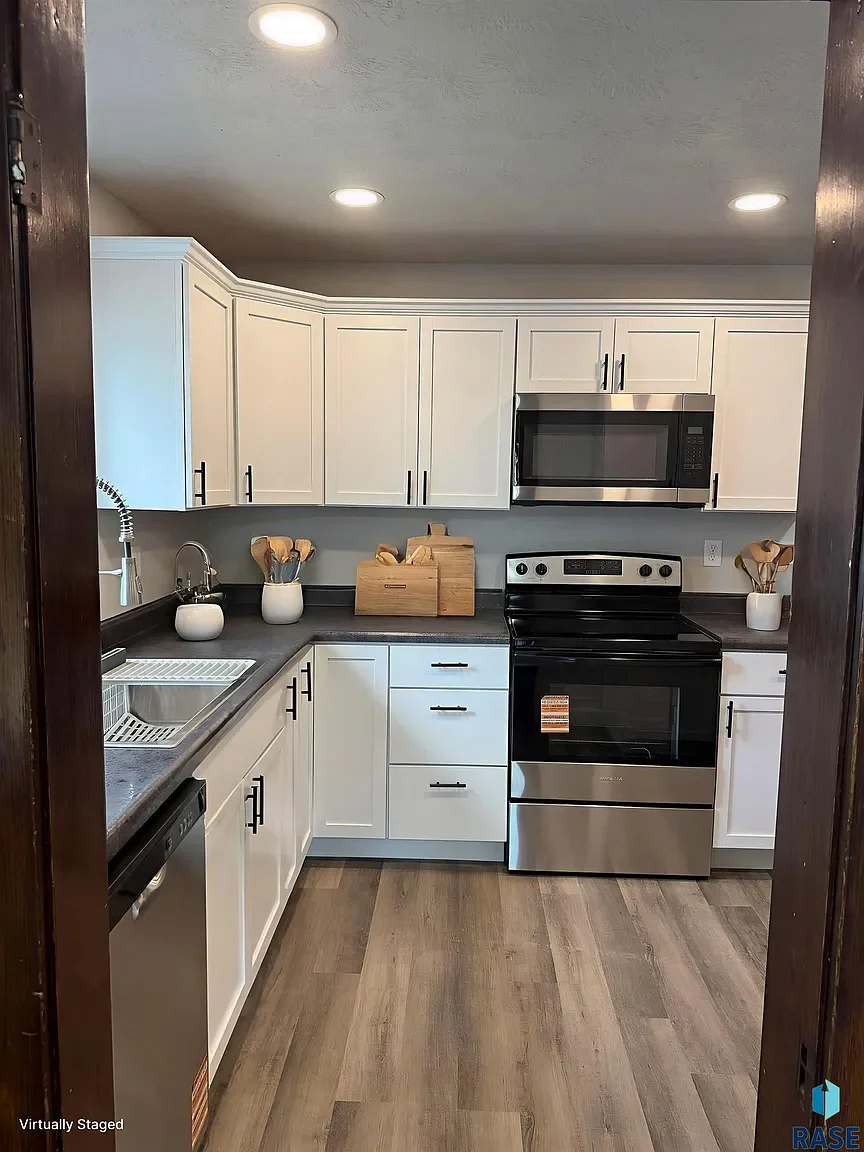 The kitchen includes new cabinets, countertops and stainless steel appliances.