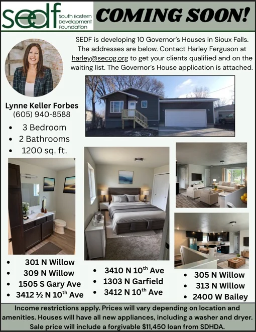 These three-bedroom, two-bath homes offer 1,200 square feet and will be located throughout Sioux Falls.