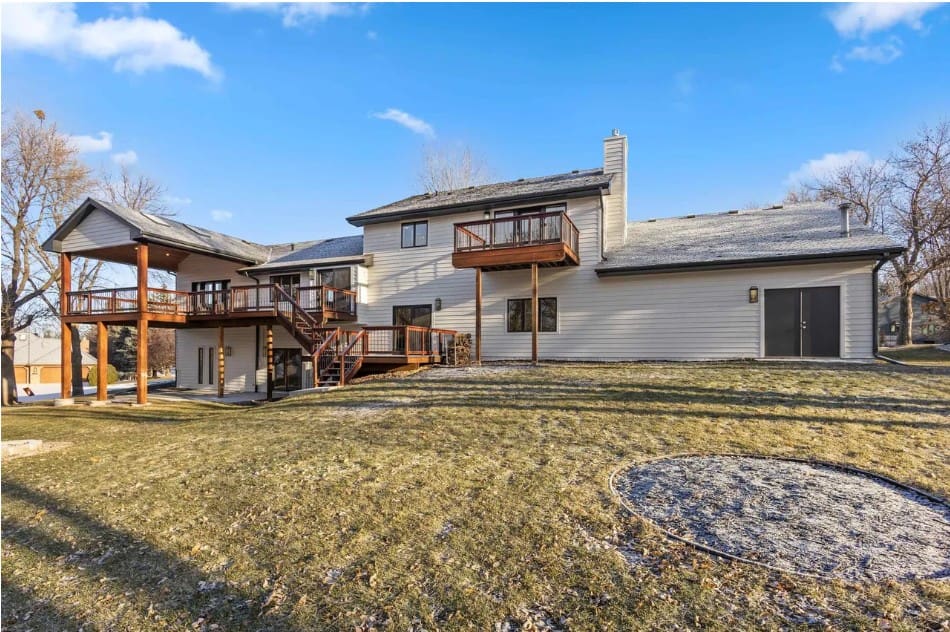 The 4,200-square-foot multi-level home was built in 1989 on a half-acre lot in the Prairie Tree neighborhood. It has been completely remodeled and has five bedrooms, all with walk-in closets, and four bathrooms. The garage is heated and holds six vehicles.