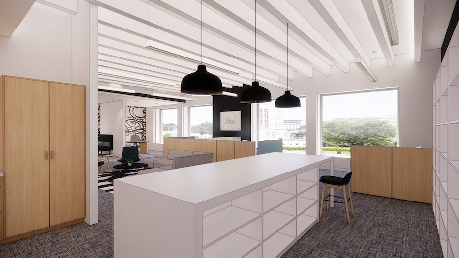 On the second floor, the law firm Evans Haigh & Arndt already is open, and designing the office led to a second tenant: Lenae Design, which is moving from Main Avenue.