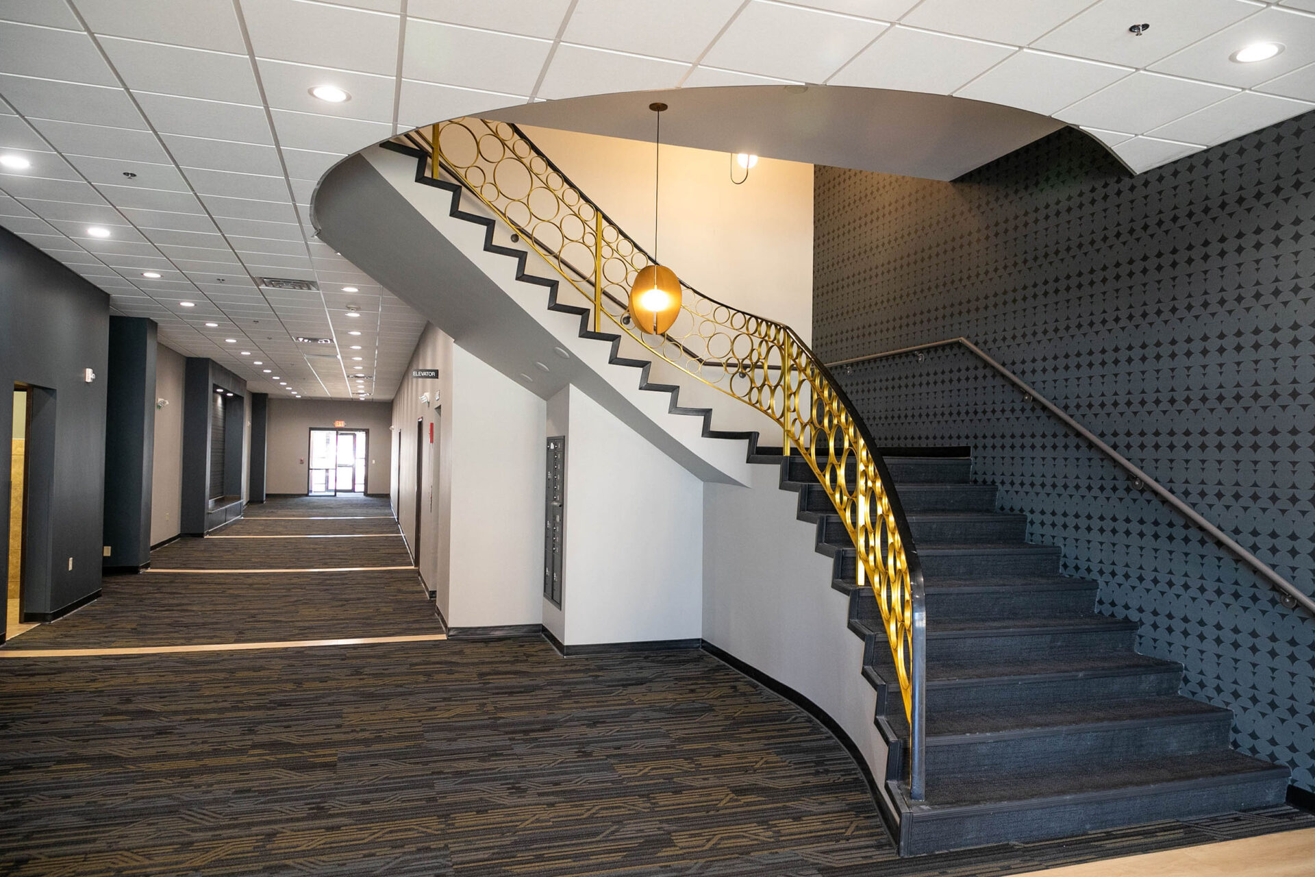 “They gutted the interior, adding new glass windows, tuck-pointing on the building, making the exterior more modern and just visually enhancing it. The common areas are complete, so when people tour the building, they can get a good feel for the look and feel of the building. There’s all new carpet, wallpaper, the only thing that remained intact was the iconic curved stairwell to the second floor, which is really cool.”