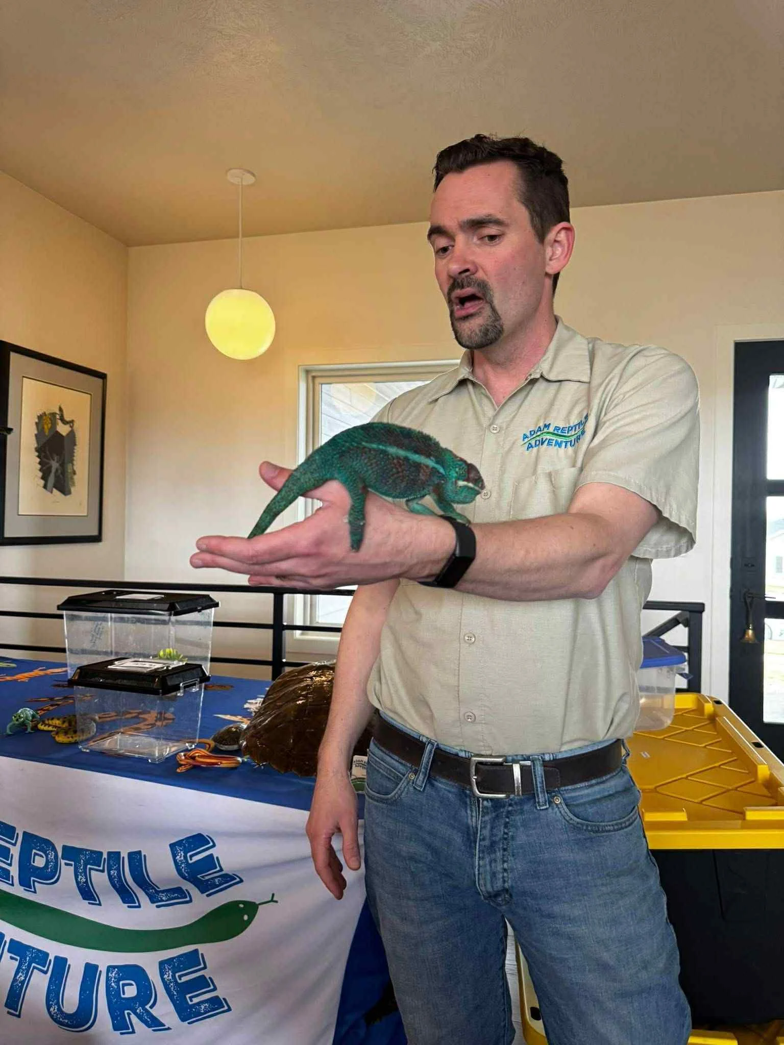 Twice a week, Adam goes to kids parties with his reptile collection. He plans to offer the zoo as a location for them as well as other special events and meetings.