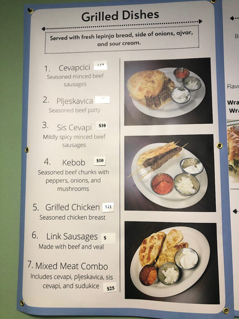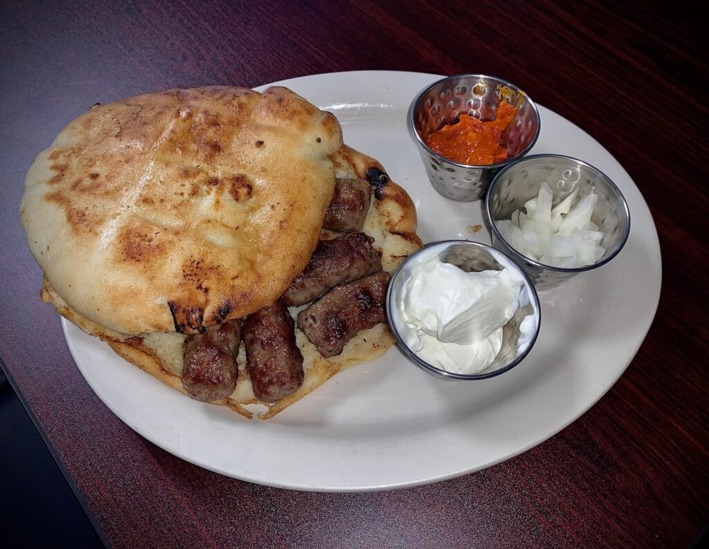 “Our most popular dish will probably be cevapi, which is a beef sausage,” said Mia Becic, the couple’s daughter. “It comes with lepinja, which is a homemade bread, and then the condiments with that they’re usually served would be sour cream, onion and something called ajvar, which is a red sauce that has a little bit of spice to it if you want.”