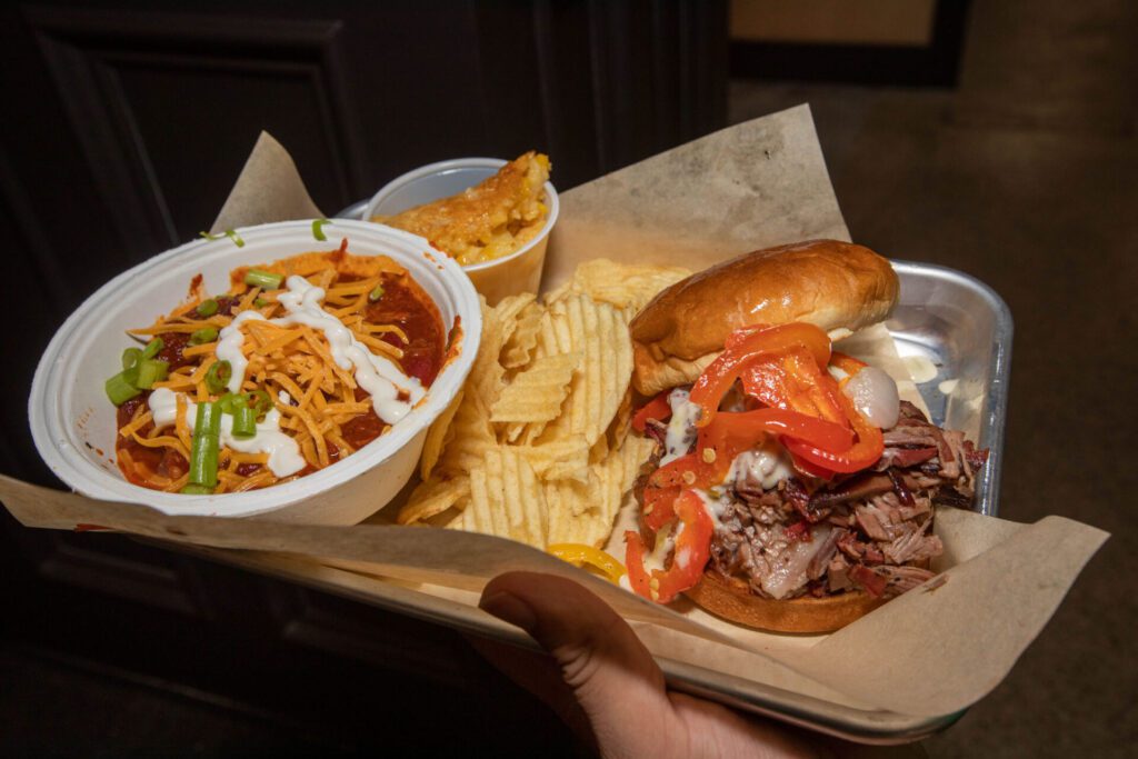Their menu features appetizers, street tacos, sandwiches and platters featuring their slow-smoked meats of turkey, pulled pork, brisket and bacon brisket. Side dishes include the likes of hash browns, baked beans, spicy street corn and green bean and cornbread casseroles.