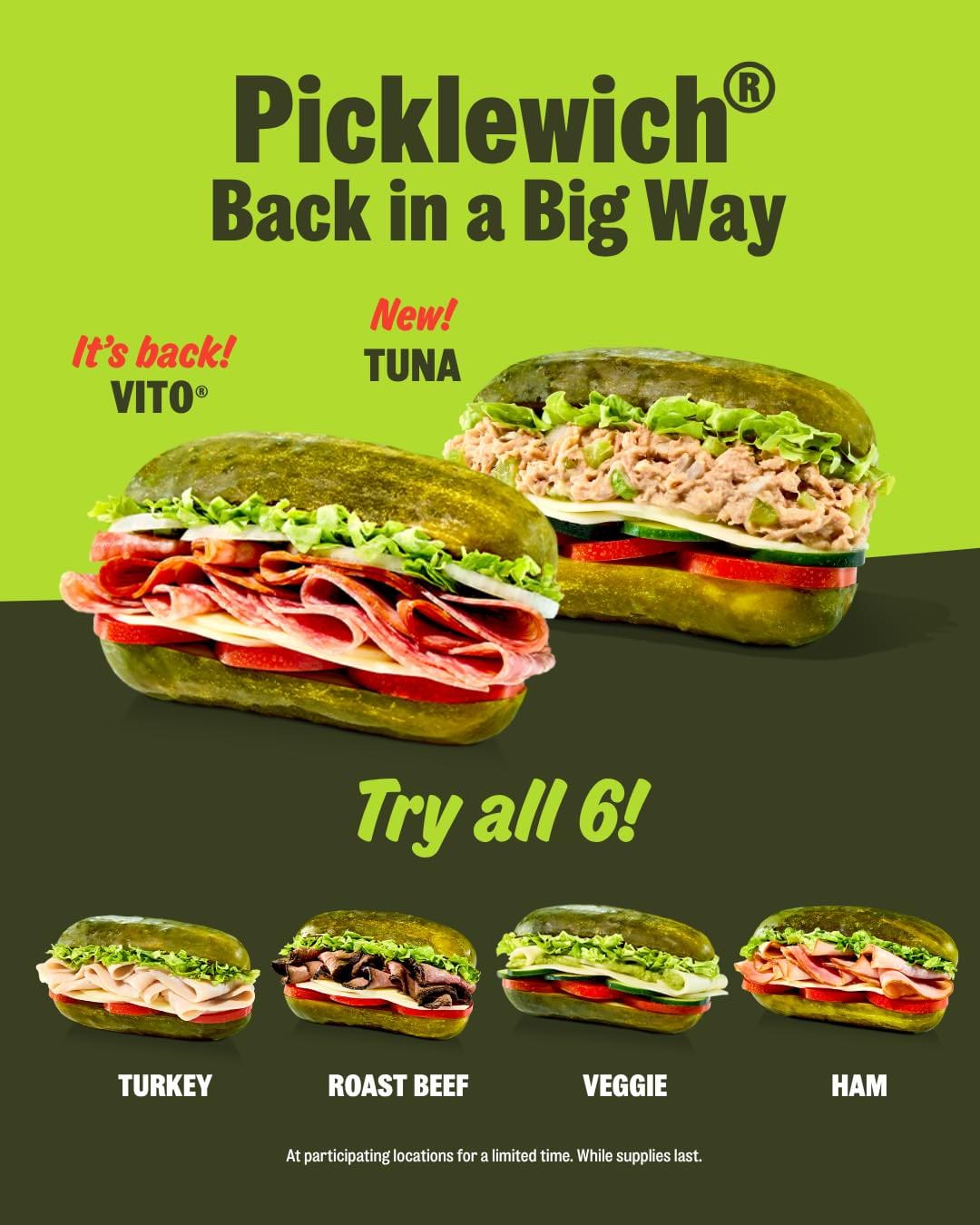 Jimmy John’s is bringing back its “picklewich” menu on Oct. 27 including two new additions: The Vito, which is an Italian sandwich with hand-sliced salami, capocollo, and provolone cheese, and a tuna.