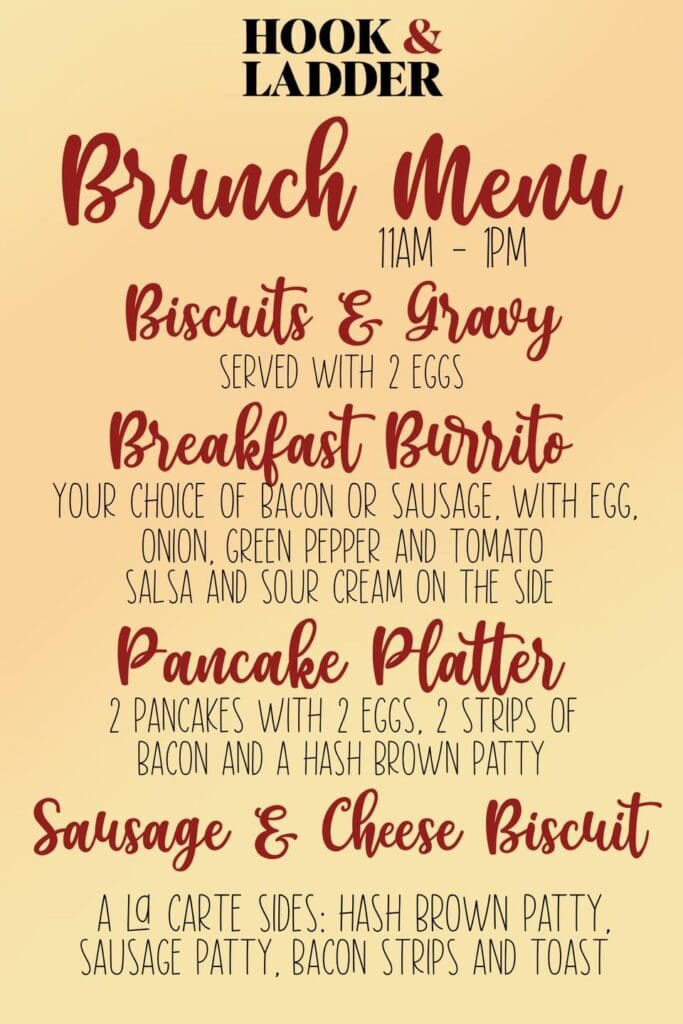 Hook & Ladder Kitchen & Bar is the latest restaurant to add a weekend brunch menu. It’s available from 11 a.m. to 1 p.m. Saturdays and Sundays. The crew said it’s starting out with a few items and will add more if it’s popular with diners.