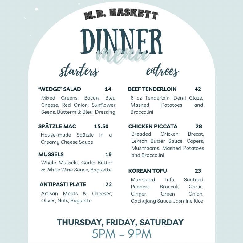 M.B. Haskett Delicatessen has a new dinner menu.