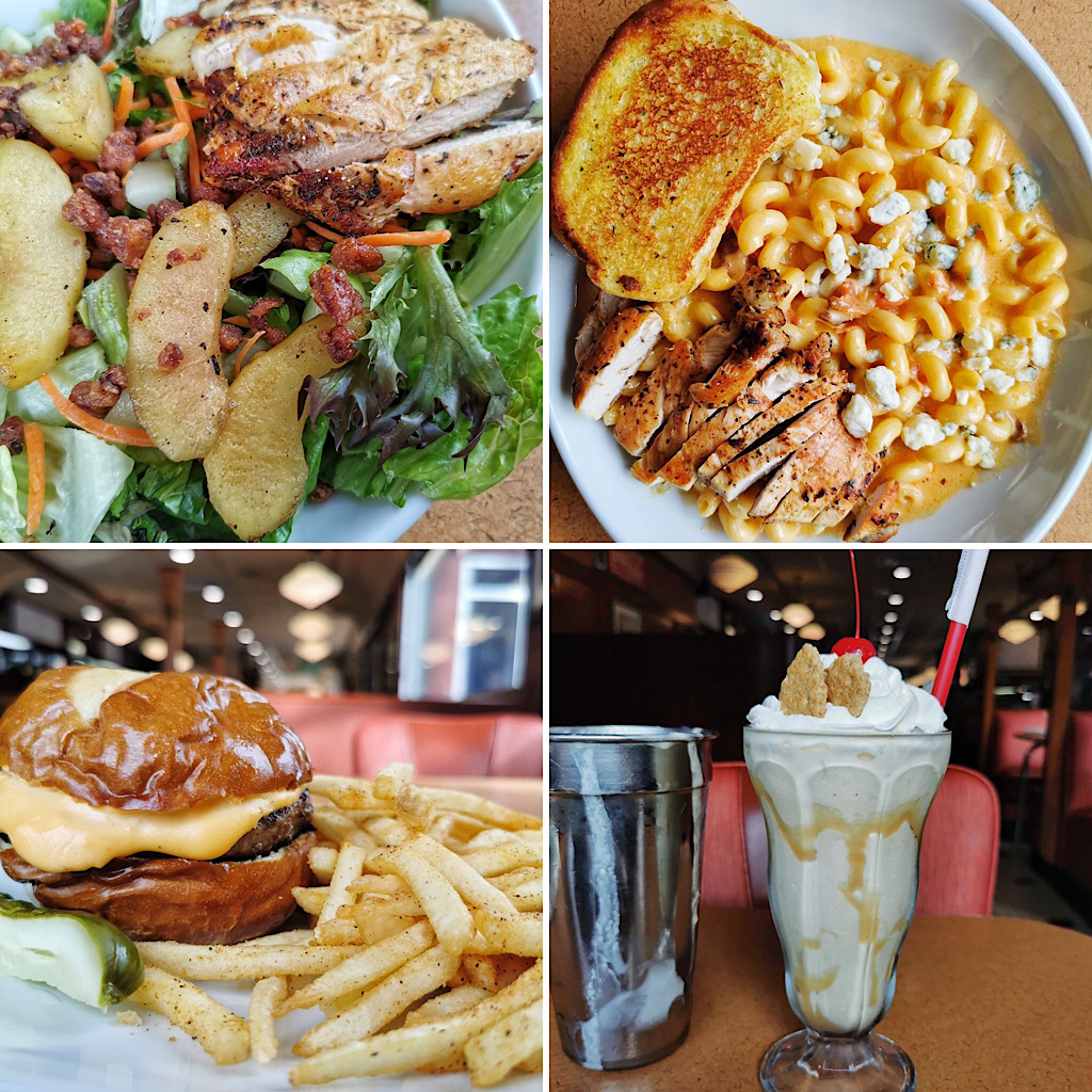 The October feature menu at the Phillips Avenue Diner embraces fall. There’s an apple pecan salad with grilled chicken, a beer cheese burger on a pretzel bun, Hobo Chili, buffalo mac-and-cheese and a caramel apple shake.