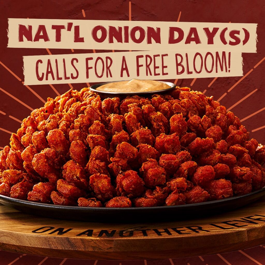 To celebrate National Onion Day, Outback Steakhouse is offering a free Bloomin’ Onion today and Friday. Mention the offer to your server or use code BLOOM online.