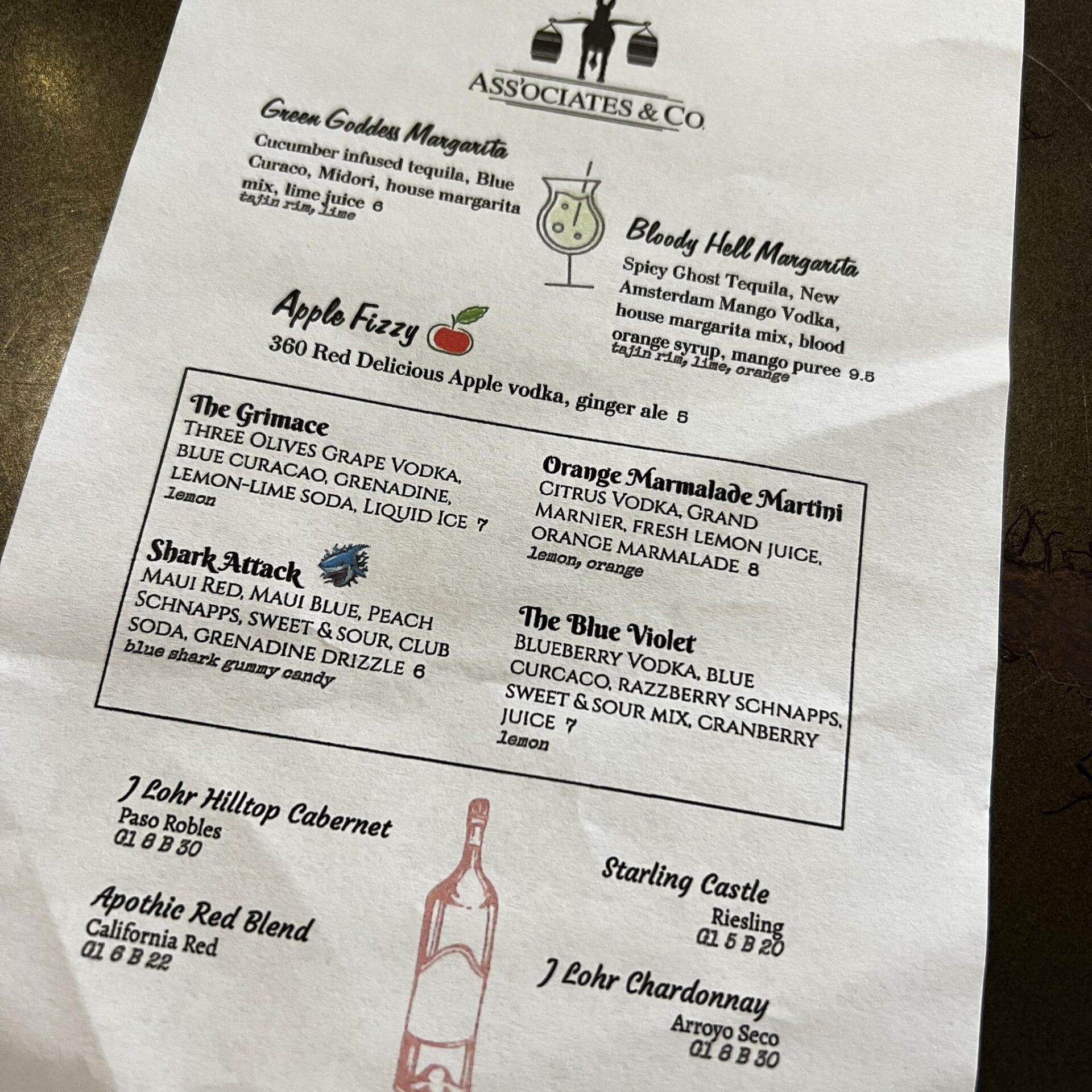 Ass’ociates & Co. at the east-side Attic Bar & Grill has a featured drink menu. Loving the nod to the Grimace’s birthday, which was June 12. The McDonald’s character turned 52.