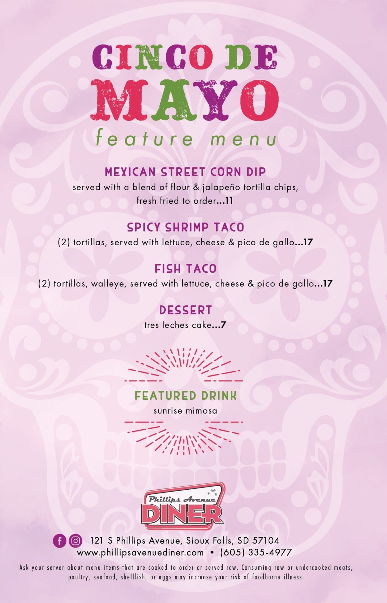 - The Phillips Avenue Diner has a Cinco de Mayo featured menu on Sunday.