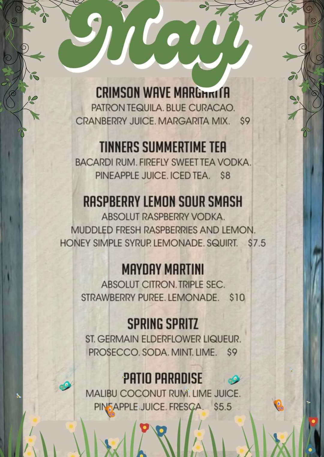Here are the featured food and drink menus for May at Tinner’s Public House and Tinner’s North.
