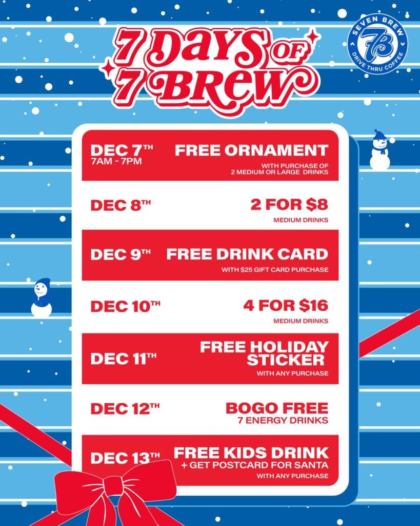 7 Brew Coffee is featuring 7 Days of 7 Brew specials next week. Here’s what’s ahead: