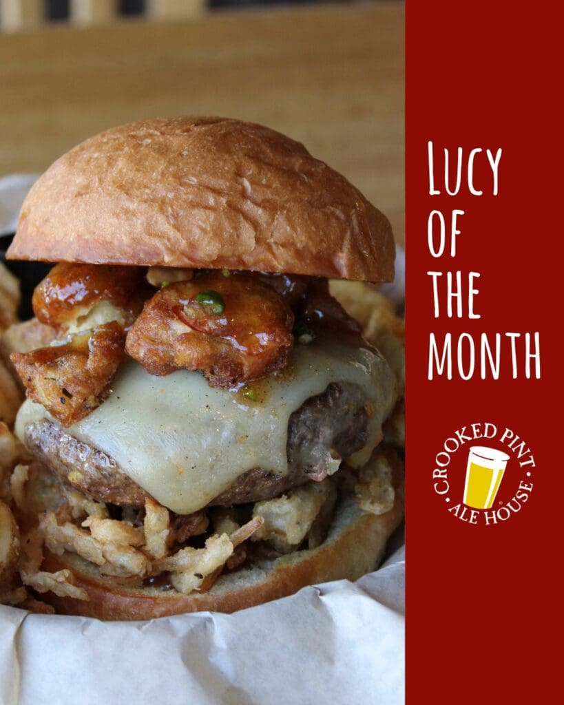 The Sweet Pepper Lucy is the sandwich of the month at Crooked Pint Ale House. It’s a pepper jack-stuffed burger topped with habanero jack cheese, fried jalapenos, haystack onions and a spicy plum sauce. The dine-in-only special comes with a choice of side for $12.
