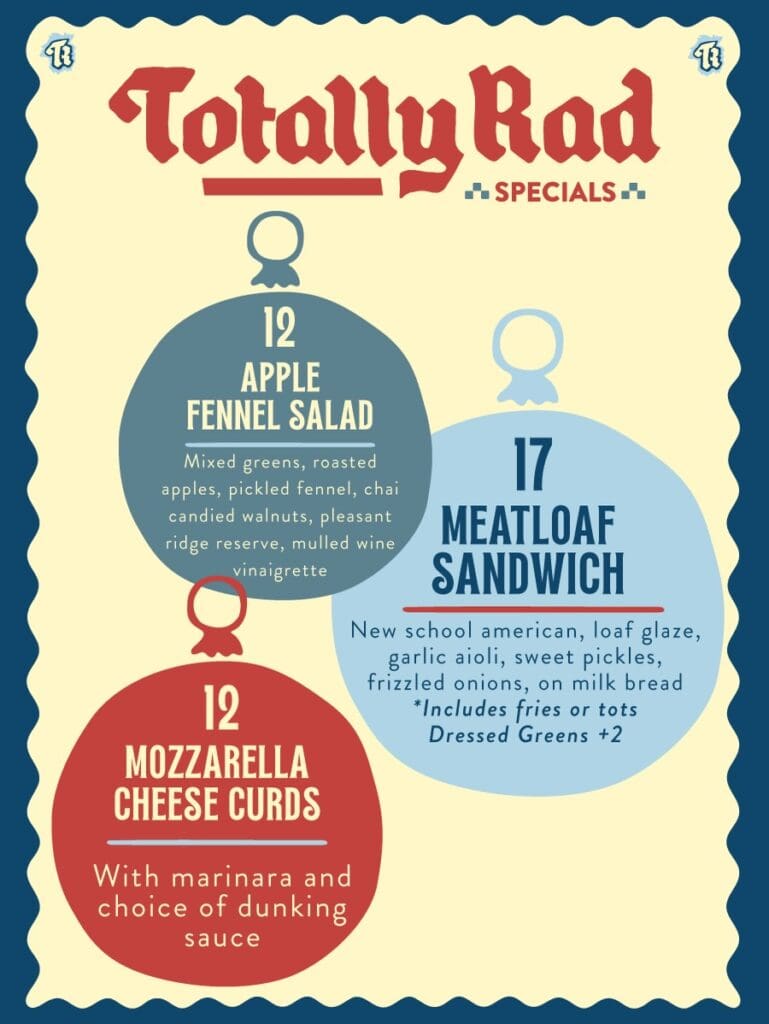 Here are the featured items for December at Totally Rad Eats in Fernson Downtown. And back for the season: the Snow Eater beer from Fernson Brewing Co.