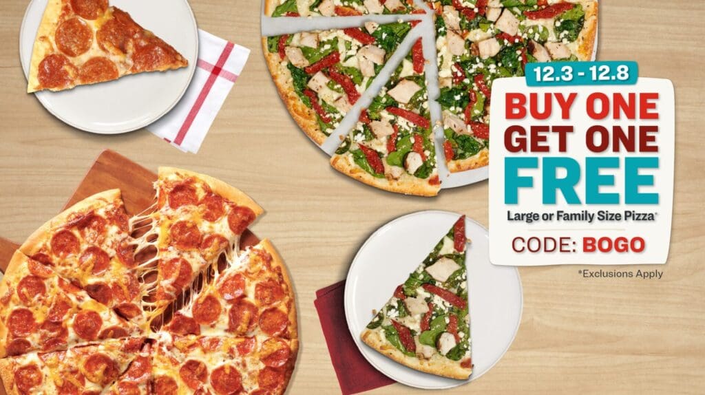 Papa Murphy’s is offering a BOGO special on online orders through Monday. Buy a large or family-sized pizza, and get a second one for free. Use the code BOGO.
