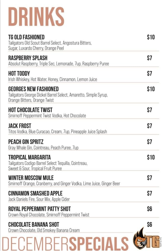 Check out the December features at Tailgators Grill & Bar in Brandon.