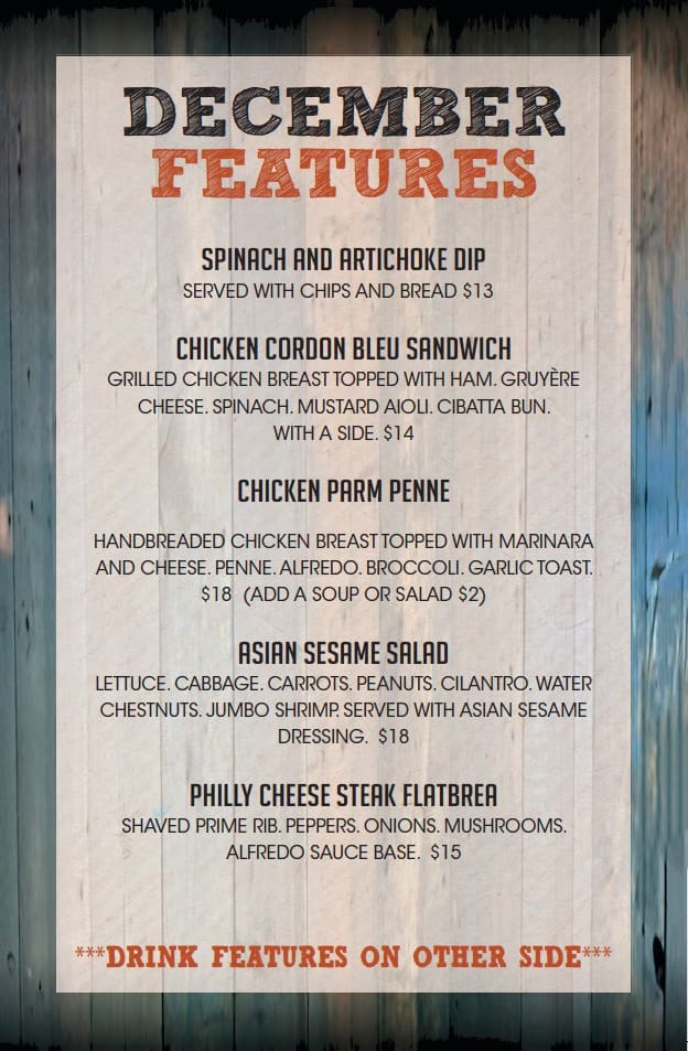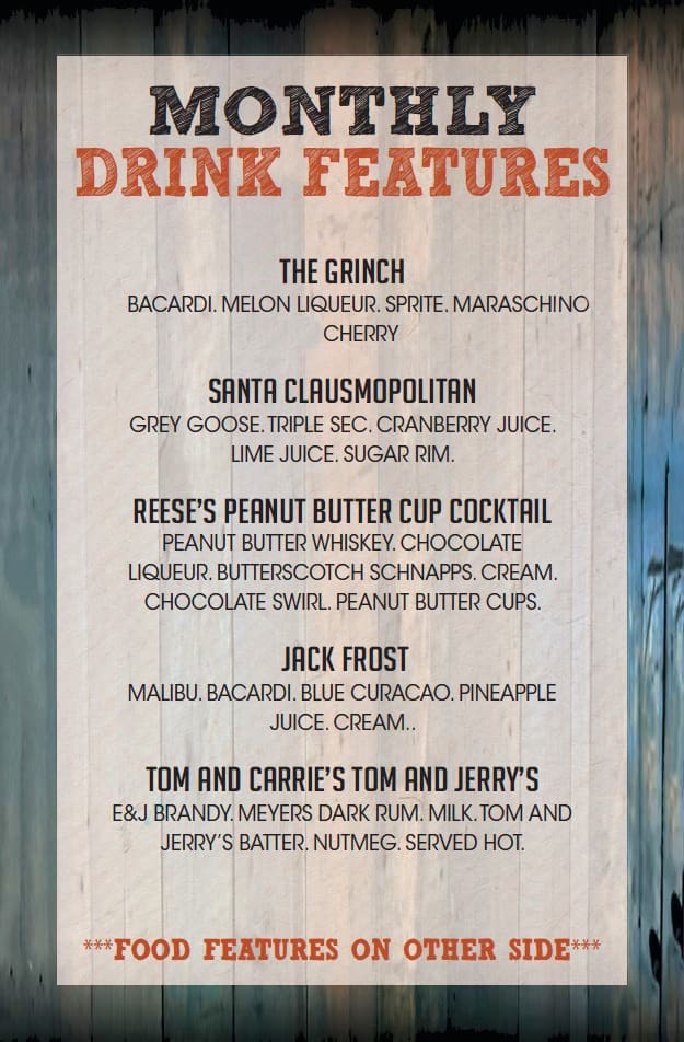 Here are the December featured food and drink menus for both locations of Tinners Public House.