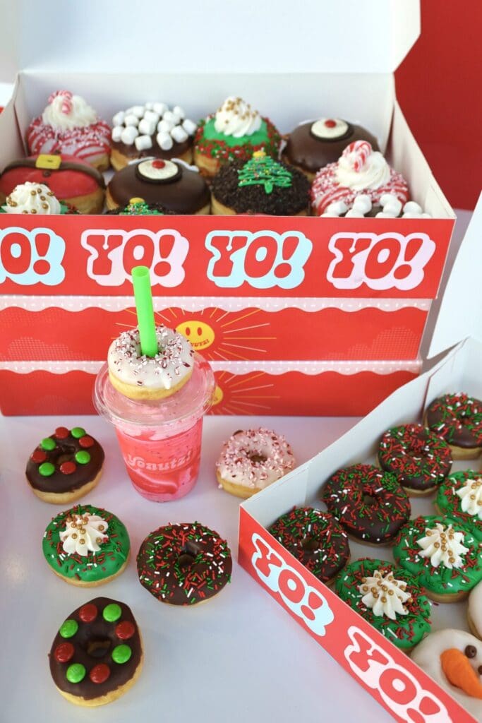 Holiday doughnuts have arrived at Yonutz: Candy Cane, Hot Chocolate Marshmallow, Oreo Christmas Tree, Vanilla Santa, Chocolate Rudolph and Buttercream Christmas Cheer. The bakery also is featuring Peppermint Smashed Milkshakes.