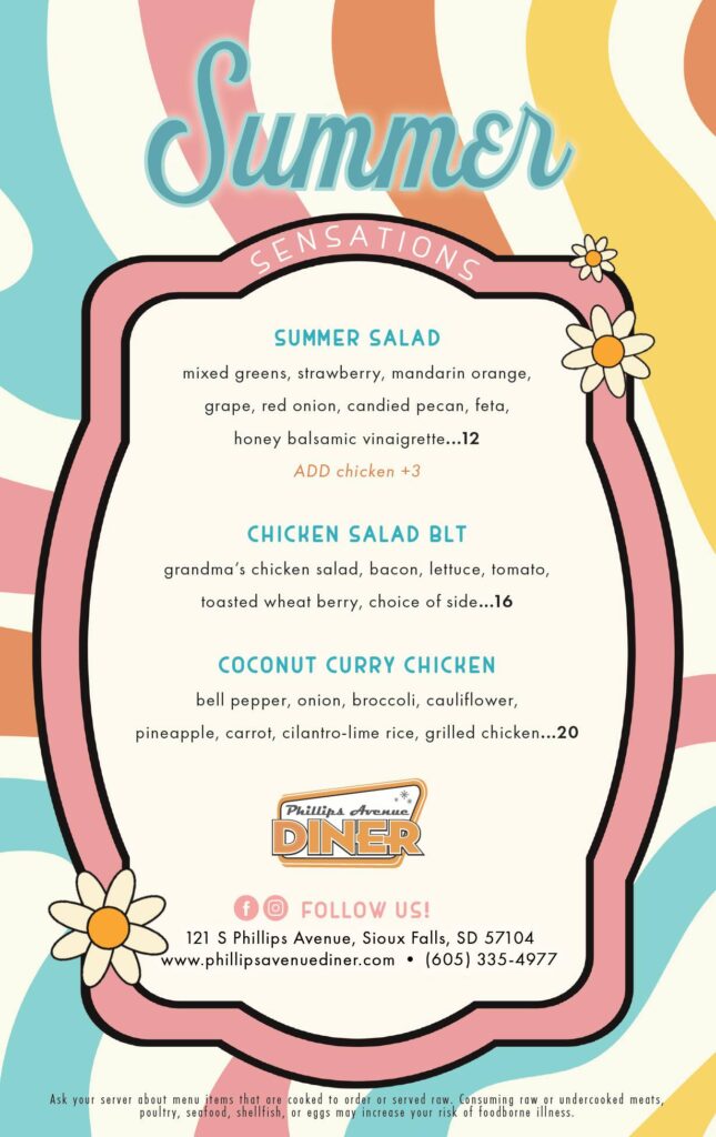 Here are the new summer specials for the Phillips Avenue Diner.