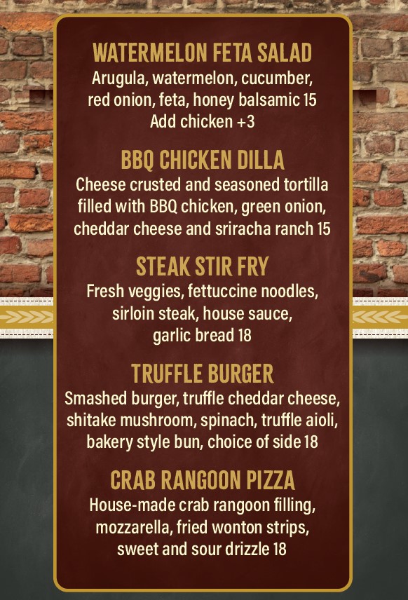 Roundhouse Brew Pub has a new featured menu.