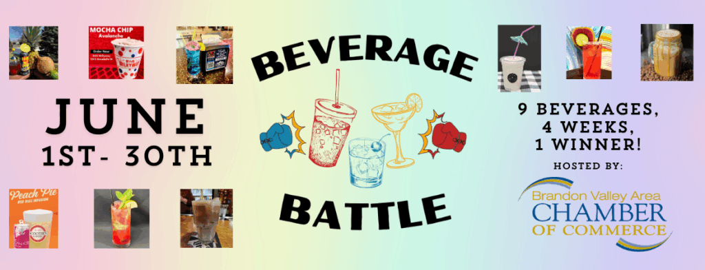 Brandon-area businesses are competing in the second annual Brandon Valley Area Beverage Battle. Competing are A Homestead Brew, B&G Milkyway, Bottoms Up, Buddies & Co., Chuds, Kingbird Coffee, Scooter’s Coffee, The Gruff Plate + Pours and the VFW. Find a list of the drinks and how to vote at BrandonValleyChamber.com.