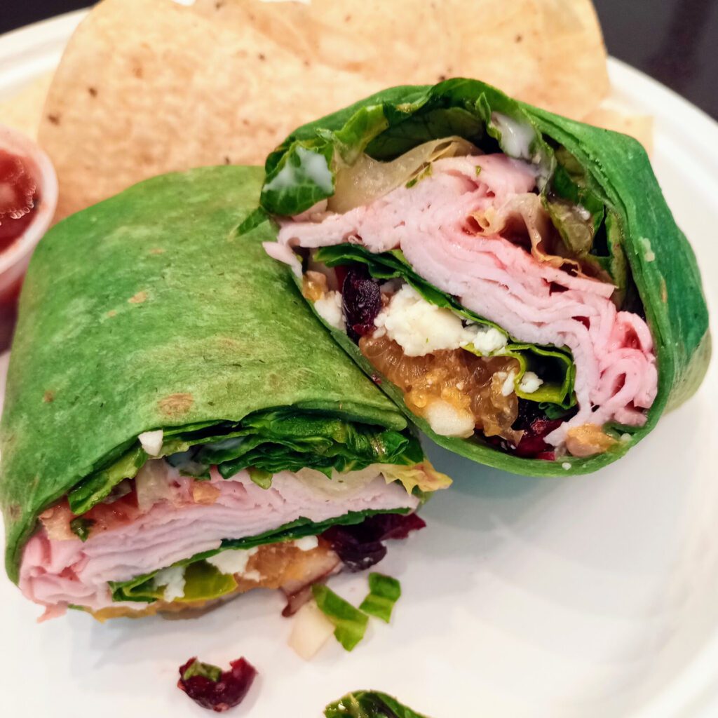 Camille’s Sidewalk Cafe’s dish of the month is the turkey craisin wrap with turkey, craisins, apples, romaine, sunflower seeds, mandarin oranges, feta and raspberry yogurt dressing, all wrapped in a spinach tortilla. Buy one and two drinks and get a free entree through June 15. Use the code CRAISED if you order online.