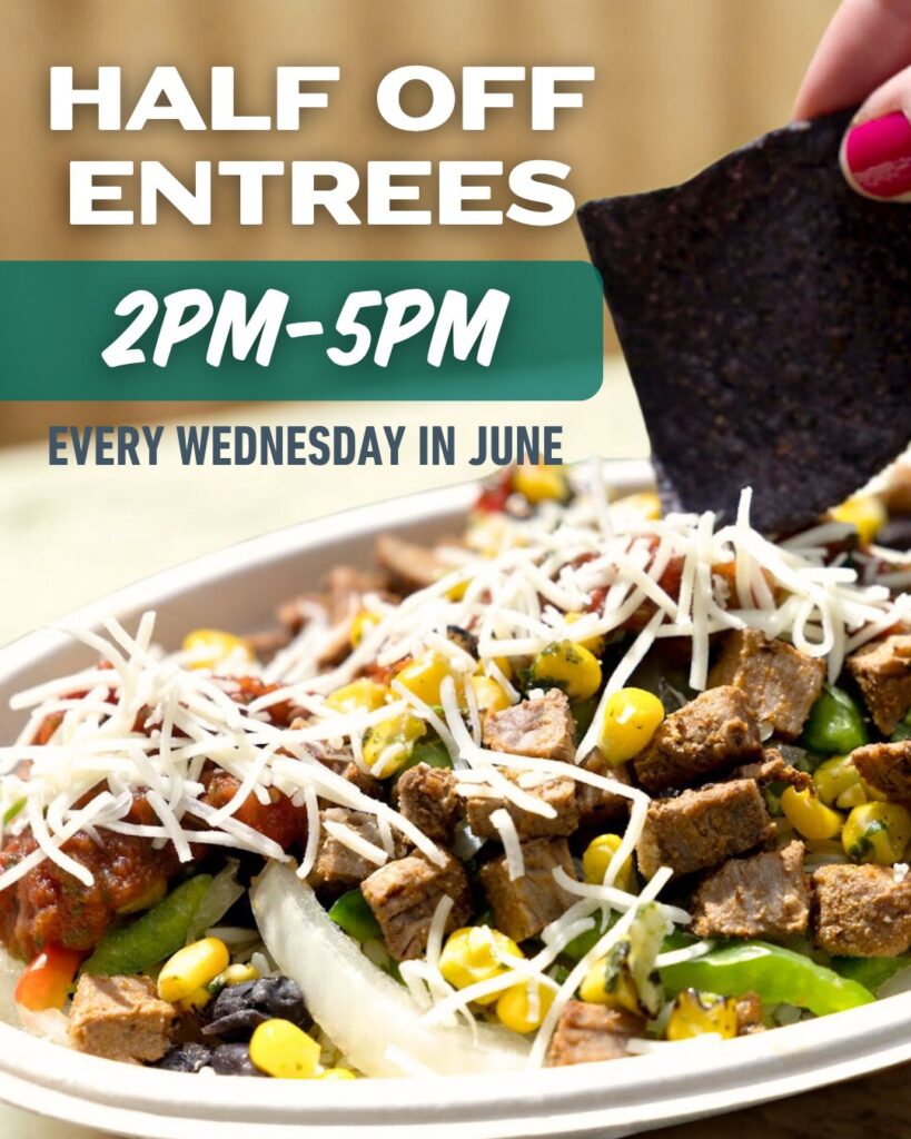 Pancheros Mexican Grill is offering half-price entrees from 2 to 5 p.m. every Wednesday in June to loyalty members.