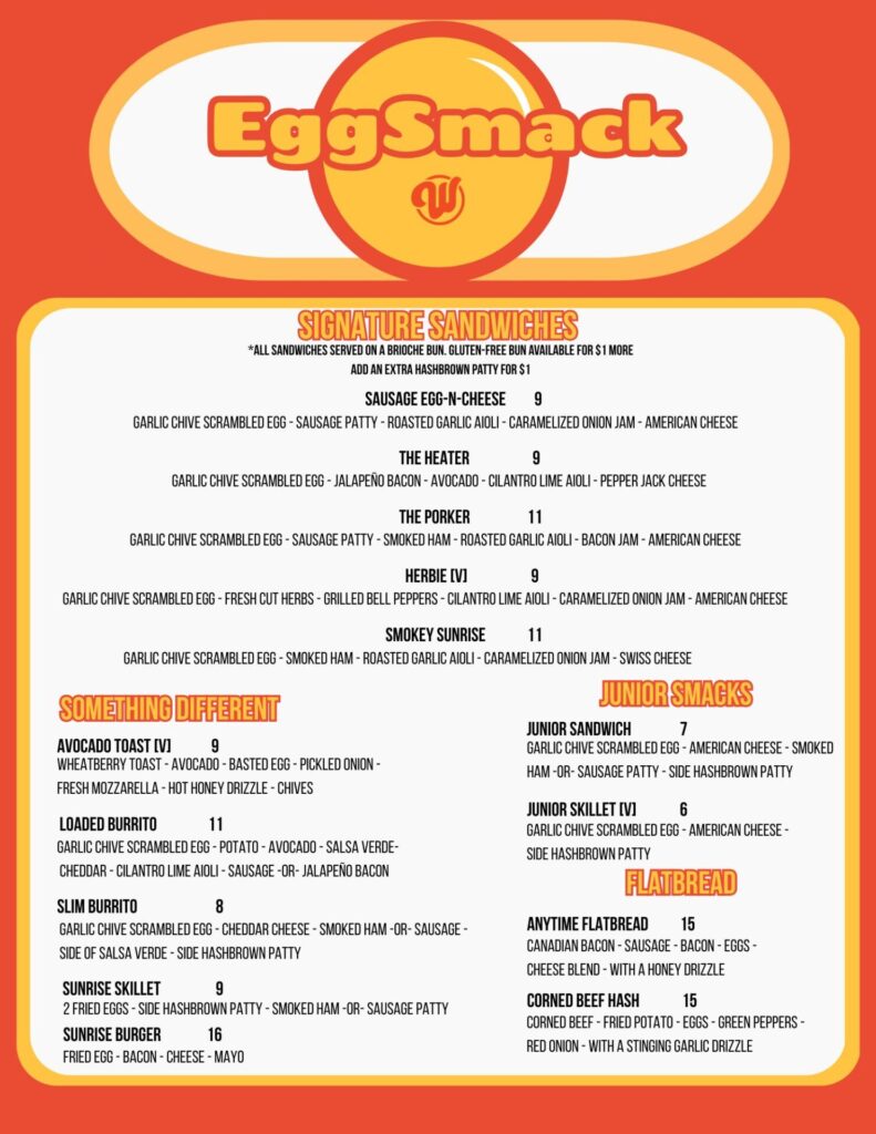 The EggSmack menu that Wagoo Burger served at Fernson Downtown will be available starting this weekend at the west-side Shenanigans Bar & Grill. The menu will be served from 8 to 11 a.m. Saturday and Sunday. The downtown Shenanigans began offering EggSmack in May after Wagoo left Fernson.