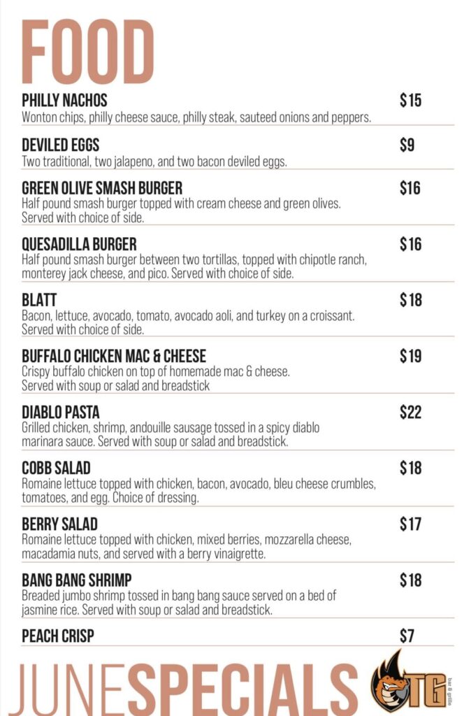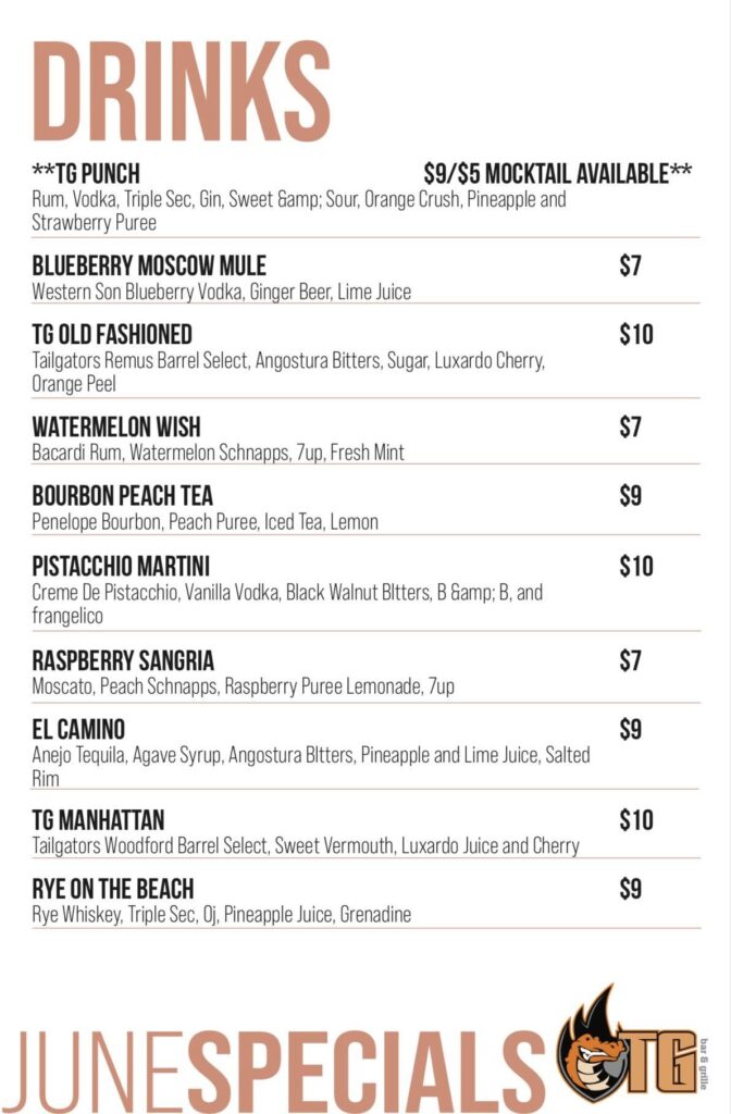 Here are the featured food and drink menus for June at Tailgators Grill & Bar in Brandon.