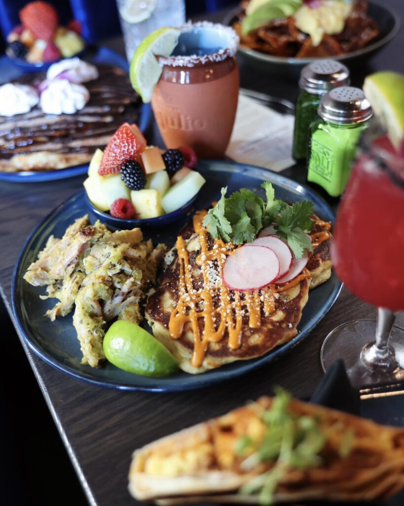 Dahlia Kitchen + Bar has added brunch on Saturday and Sunday. There are dishes like Steak and Eggs Avocado Toast-adas, Pollo Verde Masa Pancakes, Churro Pancakes, Chorizo & Yuca Breakfast Crunchwrap and Holy Trinity Breakfast Nachos, which are shown in the featured photo at the top of the page. Brunch is served from 11 a.m. to 3 p.m. along with the regular menu.
