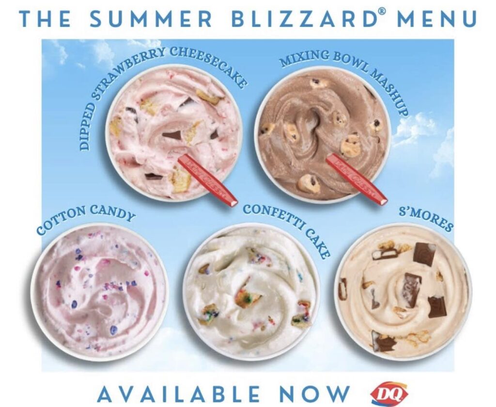 Dairy Queen’s summer Blizzard menu has arrived and includes two treats from the “DQ Freezer.” Returning favorites are confetti cake and cotton candy. New flavors are Mixing Bowl Mashup with brownie batter and chocolate chip cookie dough and Dipped Strawberry Cheesecake. The customer-choice flavor is S’mores.