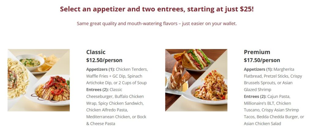 Granite City Food & Brewery has added a limited-time Tasty for 2 menu, starting at $25. It includes an appetizer and two entrees and is available for dine-in or takeout. “We know that recently dining out has started to feel like a splurge, and we want you to know we’re here for you,” the restaurant said in a social media post.