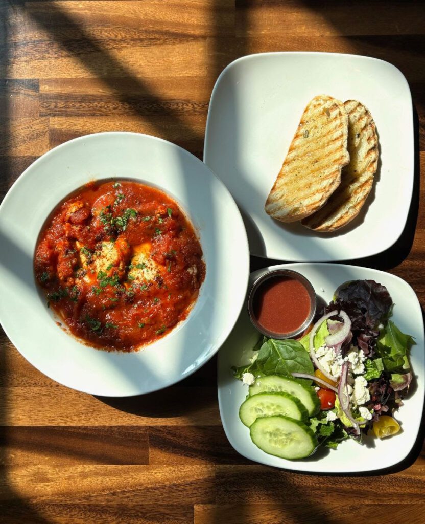 The April menu items for Saturday brunch at R Wine Bar & Kitchen are a casserole with egg whites, ground beef, red pepper, onion, mushroom, spinach and mozzarella with a side of breakfast potatoes and the dish shakshuka, which is two eggs poached in tomato sauce with red pepper, onion and cherry tomatoes, served with a small garden salad and bread or gluten-free crackers. Brunch is served from 11 a.m. to 2 p.m.