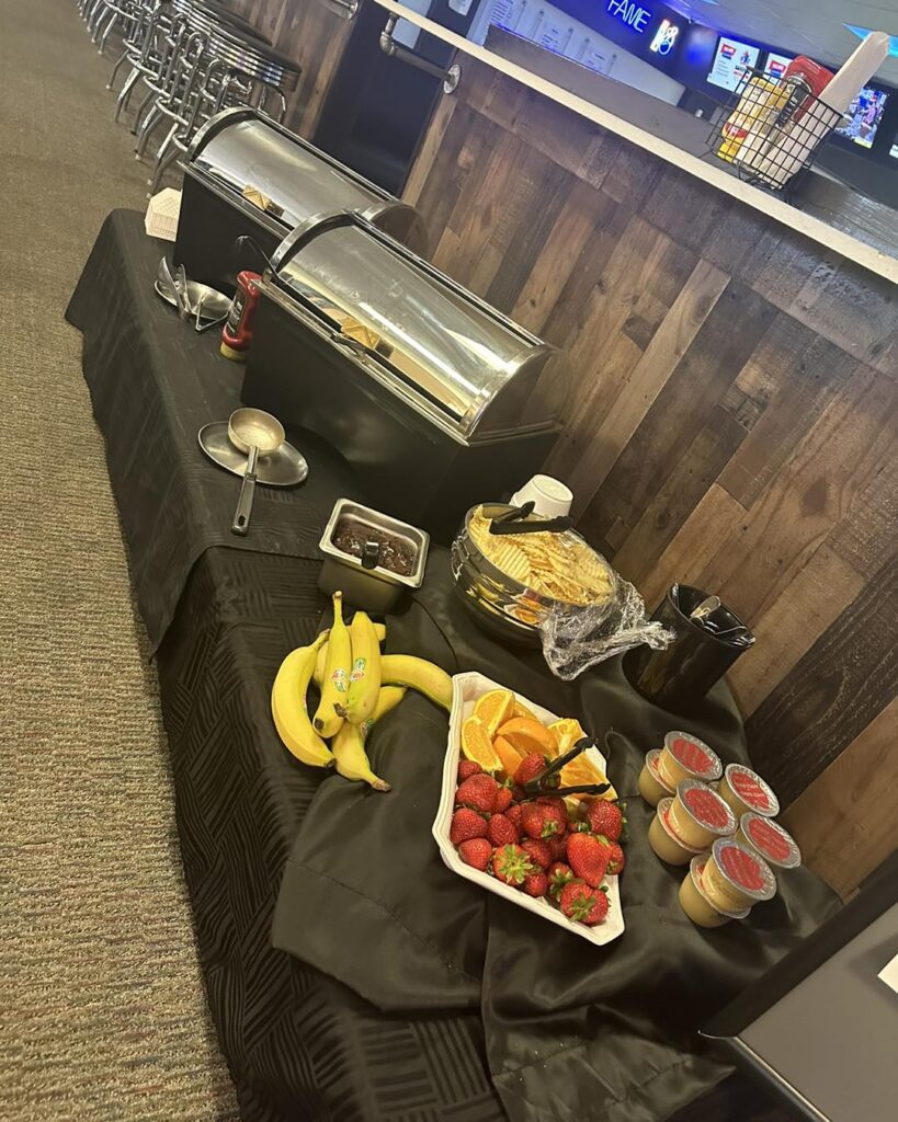 The cafe in the Pinz bowling alley in Dell Rapids serves a free buffet for kids on Wednesday nights this month. The offer is good from 5 to 8 p.m. with an adult purchase. Options the first week included popcorn chicken, spaghetti with butter or red sauce with meatballs, fries, corn, fresh fruit, applesauce and chocolate pudding.