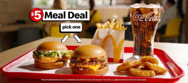 McDonald’s has a new $5 meal deal. Get a McChicken or a McDouble, along with a four-piece Chicken McNuggets, small fries and a drink.