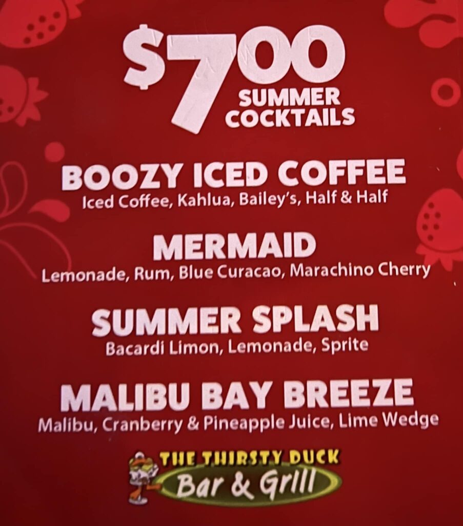 Check out the summer cocktail menu at The Thirsty Duck Bar & Grill.