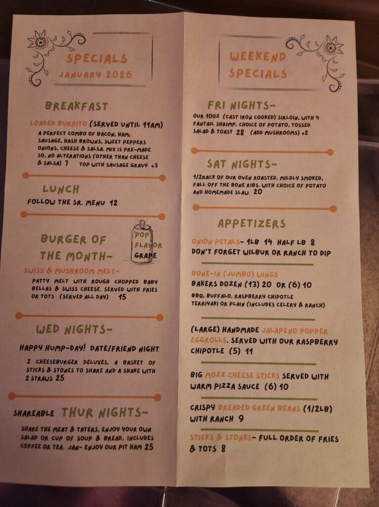 My Place Cafe in Montrose has switched its specials from changing every week to changing every month. Here’s the lineup for January.