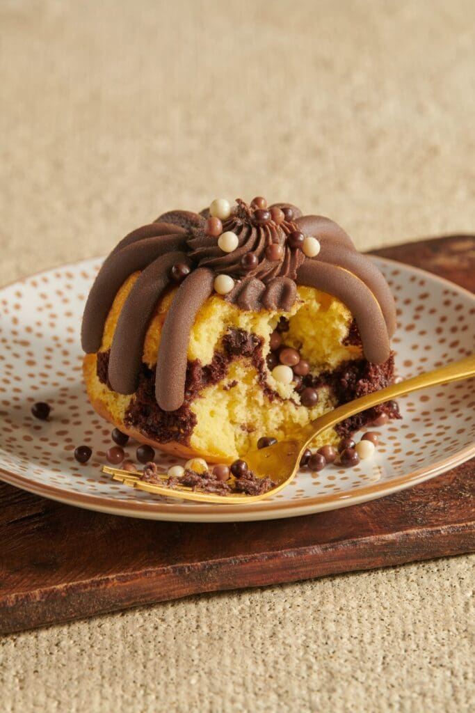 For the first time, Nothing Bundt Cakes is featuring chocolate frosting. It’s part of the latest pop-up bundtlet flavor: New-Fashioned Marble. It’s expected to be available through Jan. 25.