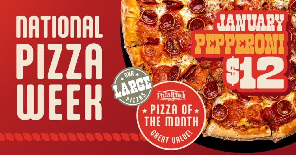 - Pizza Ranch is featuring its pizza of the month: a large pepperoni for $12 through Jan. 31.