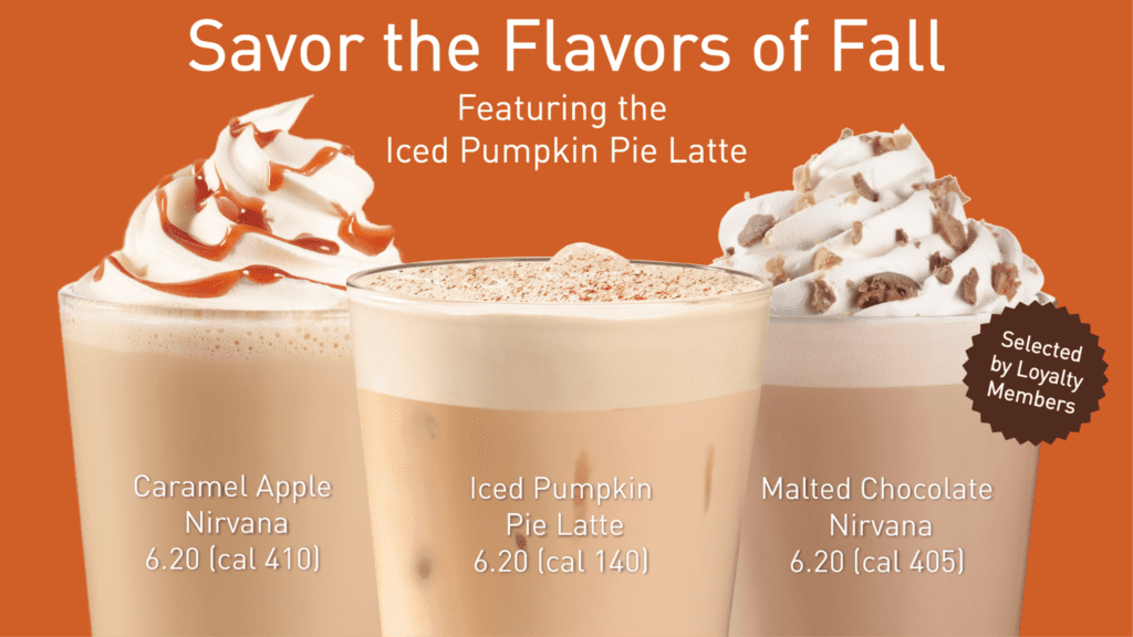 Dunn Brothers Coffee has introduced its seasonal drinks. Both shops are offering Pumpkin Pie Latte, Caramel Apple Nirvana, Malted Chocolate Nirvana and Mulled Cider.