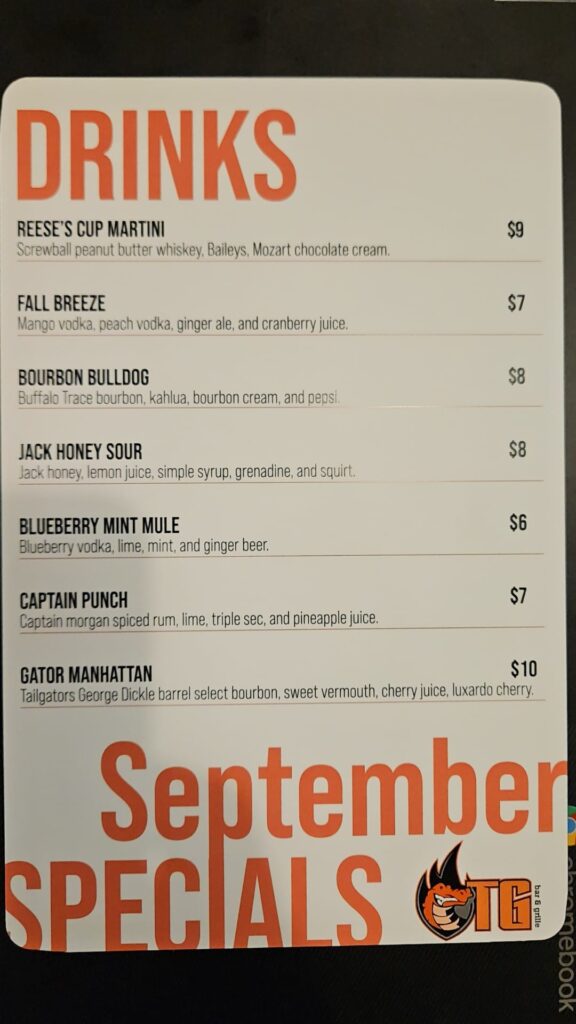 Tailgators Grill & Bar in Brandon has new food and drink specials for September.
