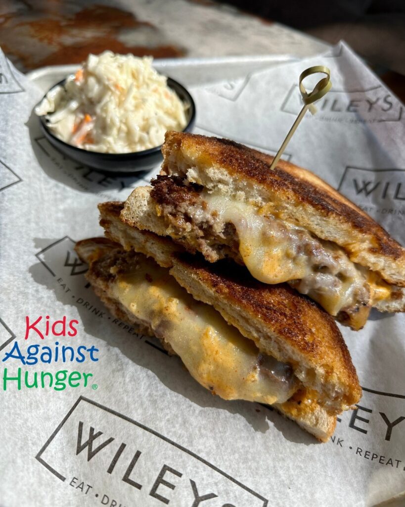 The burger of the month at Wileys is The Ultimate Grilled Cheese Burger. It’s two smash patties with a mix of melted Swiss, cheddar, American and provolone cheeses. Everything is layered on sourdough bread with Dijon aioli.