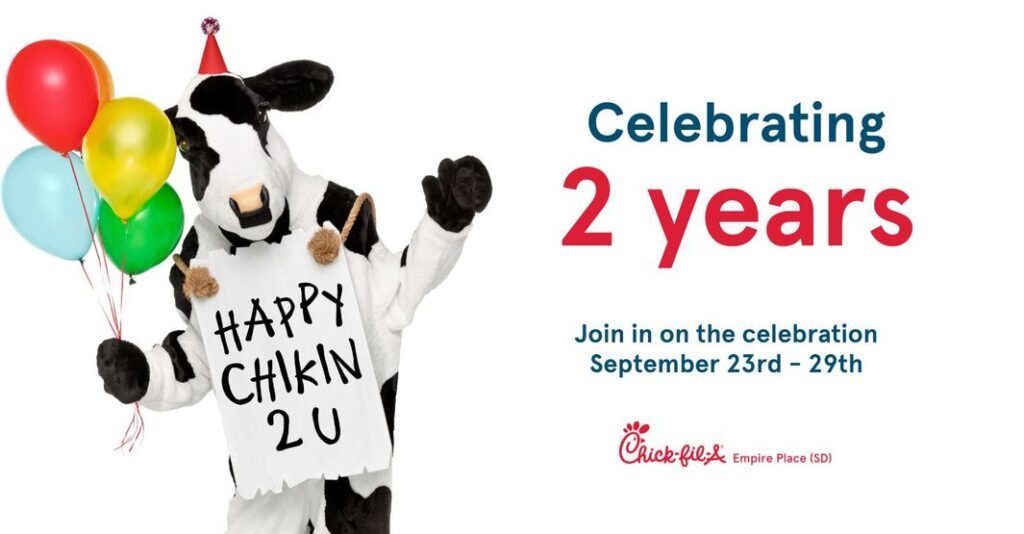 Chick-fil-A at Empire Place is celebrating its second anniversary in Sioux Falls with free food and a scavenger hunt. Next week, each day Monday through Friday, it will post clues on social media about the location of a hidden morning medallion and an afternoon medallion. Bring it to the restaurant for a prize, and earn a chance to win Chick-fil-A for a year. On Monday, 5,000 customers will get a voucher for a free menu item. They’ll be given out randomly with orders.