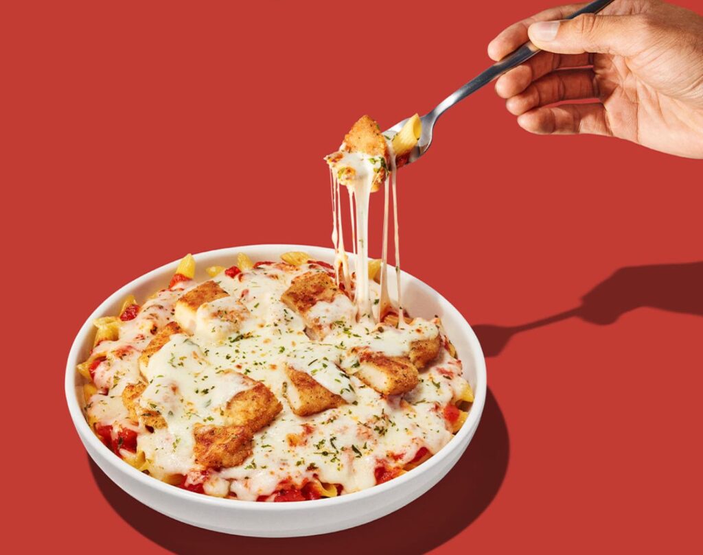 Noodles & Company has introduced its first baked menu item. The new Chicken Parmesan features penne noodles topped with crushed tomato marinara, Parmsan-crusted chicken and mozzarella, garnished with parsley.