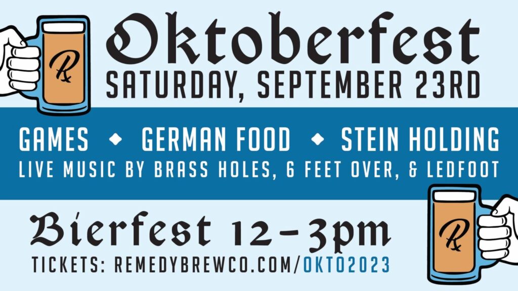 Remedy’s Brewing Co.’s seventh annual Oktoberfest is Saturday. It’s free to attend, but you’ll have to pay for Bierfest, which is a three-hour sampling of 30 local seasonal craft beers with limited tickets, and to compete in the stein holding competition. Throughout the day, there will be live music and games like pumpkin bowling. The Home Brew Fest from noon to 3 p.m. includes free samples. The Saucy Boyz in the Remedy kitchen have crafted a special menu with German Meatballs, Currywurst Bites, Beer Brat Sandwich, Pork Schnitzel Sandwich, Keep’n It Fraiche Flatbread and a Giant Pretzel with beer cheese spread and beer mustard. Find all the details, purchase Bierfest tickets or sign up for the stein holding contest at remedybrewco.com.
