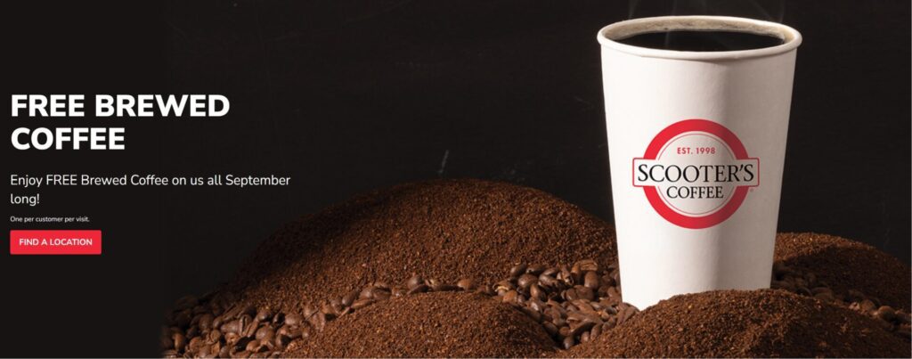 Customers can get a free brewed coffee every day for the rest of the month at Scooter’s Coffee. The Scoot on Around special is good at participating locations while supplies last and does not include extras such as flavored syrups and whipped cream.
